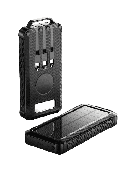 Solarna napajalna banka je sestavljena iz litij polimerne baterije s skupno velikostjo 10.000 mAh. S pomočjo 4 LED diod lahko spremljate preostalo zmogljivost solarne napajalne banke. Zaradi dveh vhodov USB lahko hkrati priključite dve napravi. Ta izdelek je primeren tudi, ko ste na poti, saj je opremljen z vodoodporno zaščito IP67. Poleg tega je na spodnji strani nameščena žarometna svetilka.
