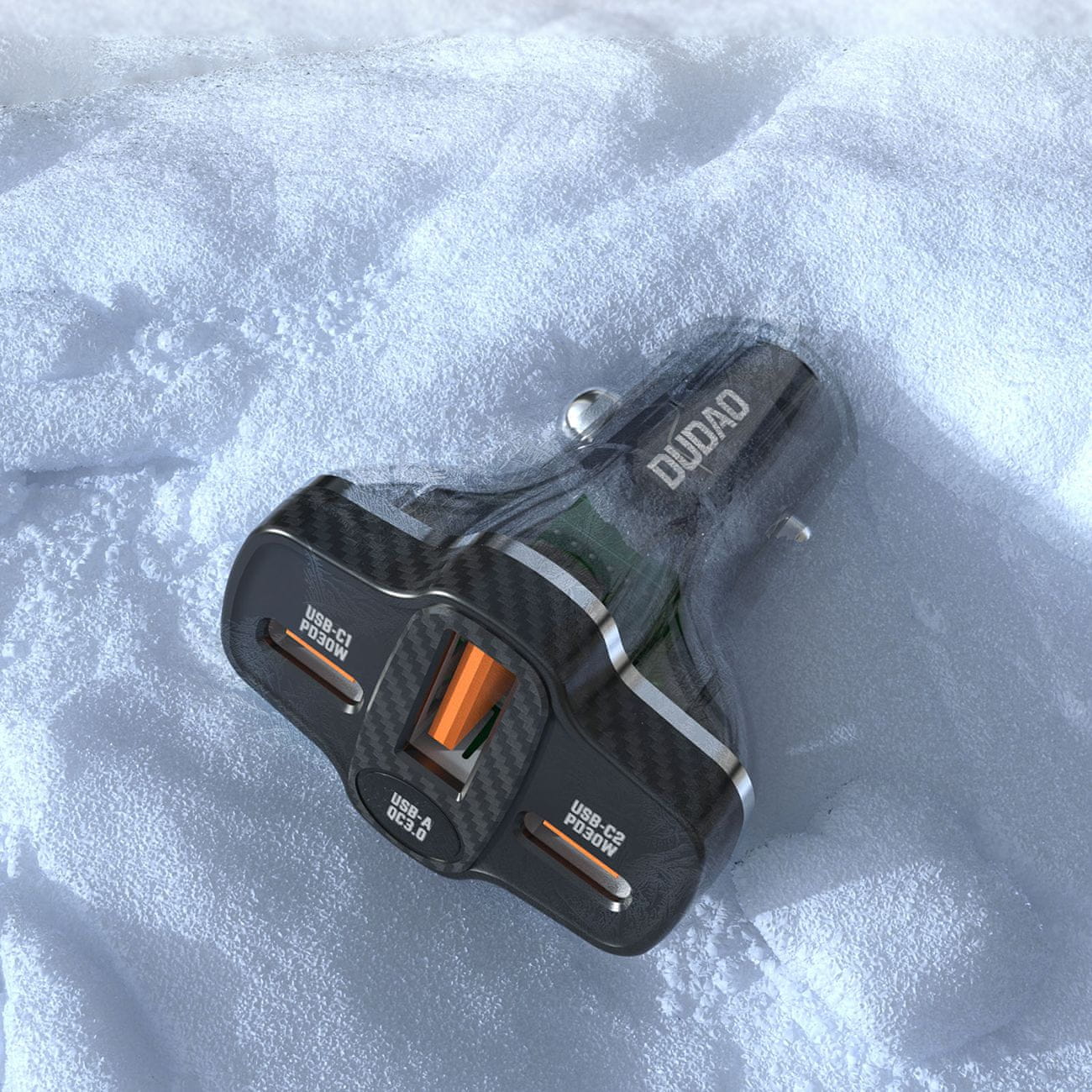 DUDAO Avtomobilski polnilnik R78 78 W USB-C PD / 2xUSB-A QC – črn