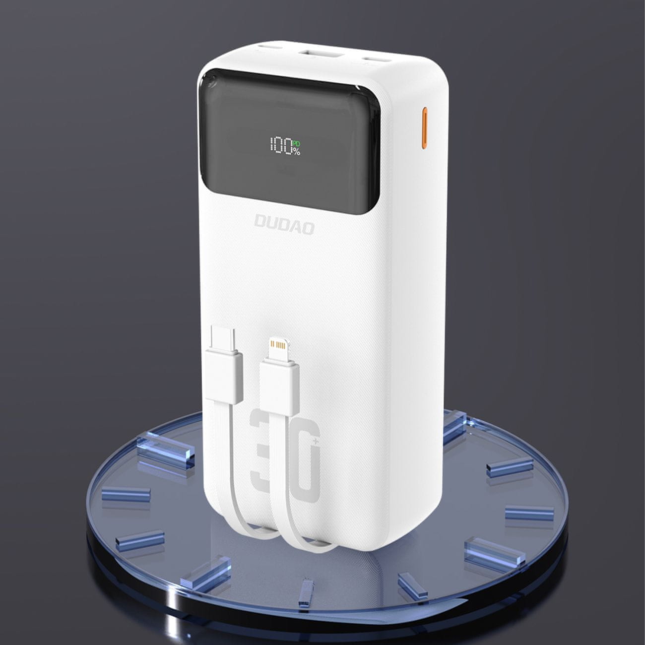 DUDAO Powerbank 30000mAh z vgrajenimi kabli PD 22,5W - bela