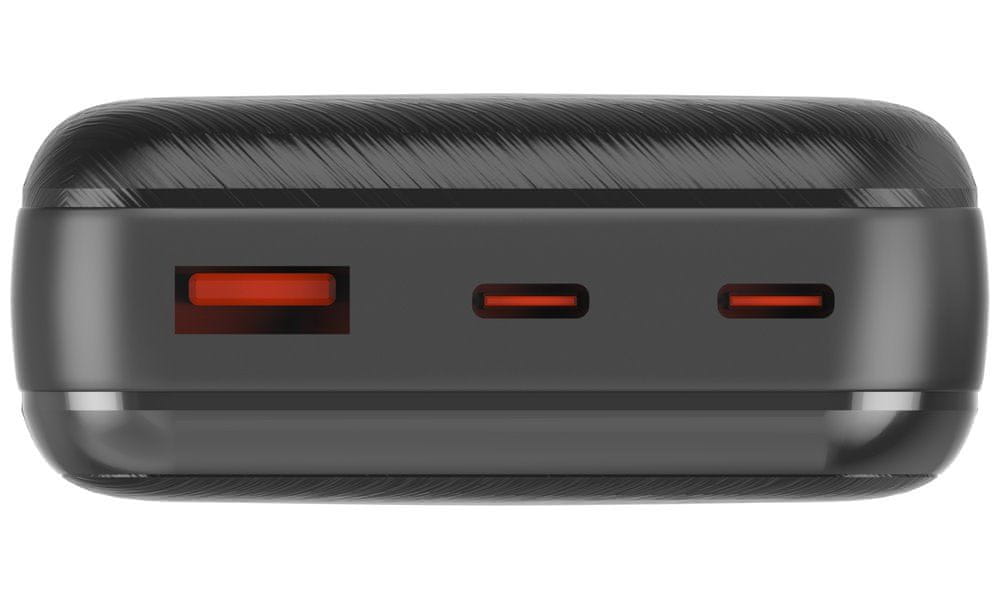 Powerbank v elegantni in praktični zasnovi z zmogljivostjo 20.000 mAh, dvemi priključki USB-C in enim priključkom USB za polnjenje naprav. Eno od vrat USB-C lahko uporabljate tudi kot vhod in izhod. Z uporabo enega vhoda lahko napajalna banka ponudi največjo izhodno moč do 22,5 W (20 W za USB-C). Seveda lahko hkrati polnite tri naprave ali pa svetlobno indikacijo stanja napolnjenosti baterije. Vgrajena je tudi zaščita pred kratkim stikom, pregrevanjem in prekomernim polnjenjem. Polnjenje lahko poteka prek vhoda USB-C.