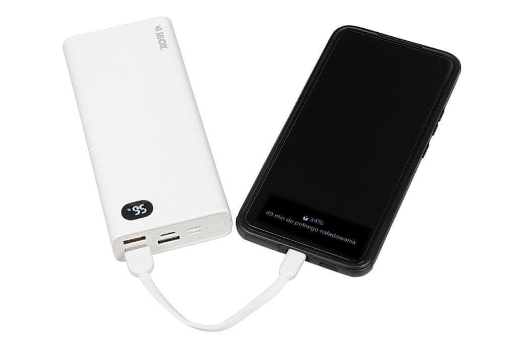 Power Bank iBOX PB20 20000 mAh je zmogljiv prenosni polnilnik, ki omogoča hitro in učinkovito polnjenje vaših naprav kjerkoli ste. S kapaciteto 20000 mAh in možnostjo hkratnega polnjenja do štirih naprav je odlična izbira za potovanja, dopuste ali vsakodnevno uporabo.