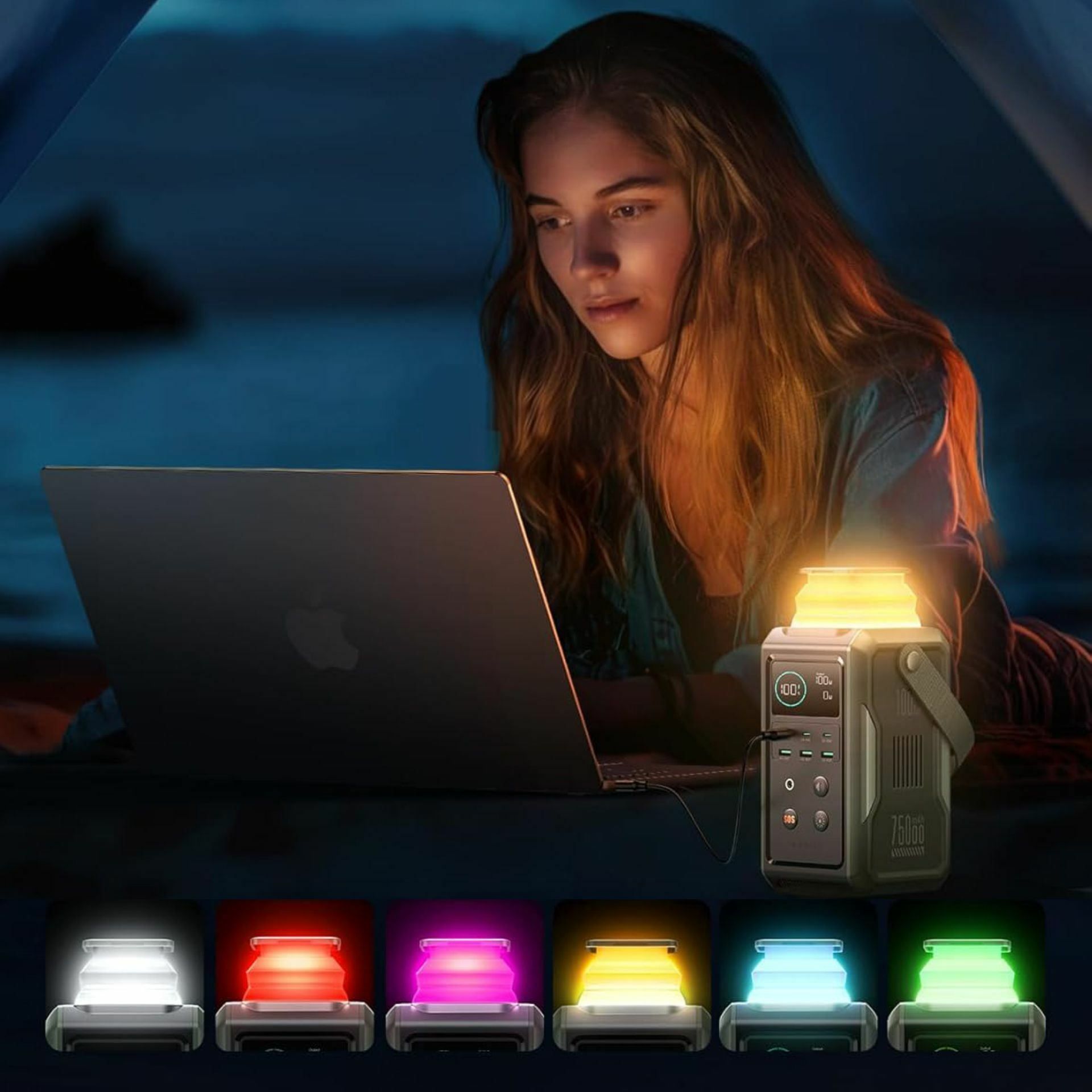 Hkrati polni šest naprav. Trije vhodi USB-C in trije vhodi USB-A omogočajo hkratno napajanje prenosnikov, telefonov, tablic in drugih pripomočkov. Ima priročen ročaj za nošenje in vgrajeno svetilko. Idealna za kampiranje, izpade električne energije, fotografiranje ali prenose v živo.