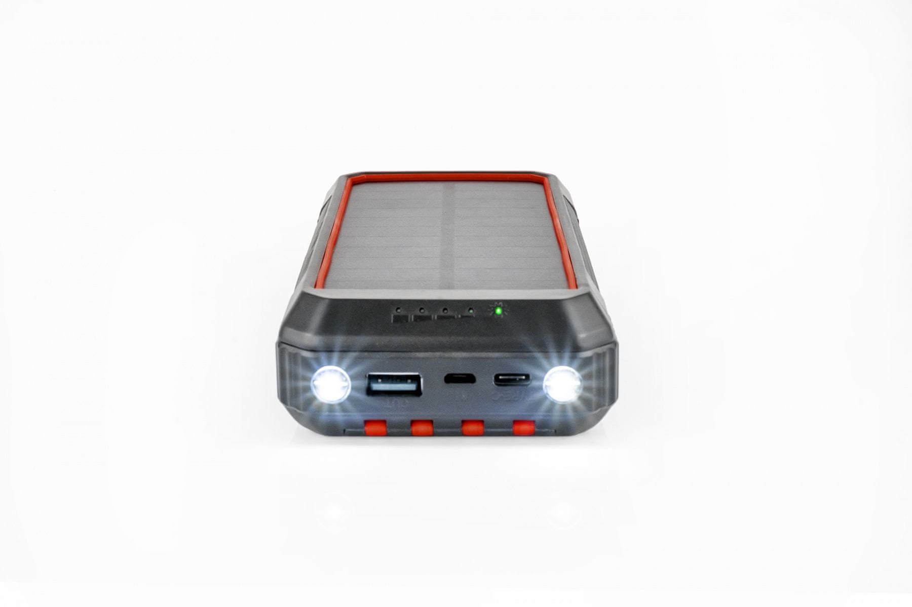 Banka napajanja je zelo vzdržljiva, saj je ob straneh ojačana z materialom, odpornim na udarce. V ohišju izdelka sta dve močni diodi LED s funkcijami osvetlitve, SOS in stroboskopa. Zato je odličen partner za pustolovščine na prostem, kjer vas zaradi velike zmogljivosti baterije, sončne plošče, osvetlitve LED in trdne konstrukcije ne bo pustil na cedilu. Pametna podrobnost je luknja za vrvico.