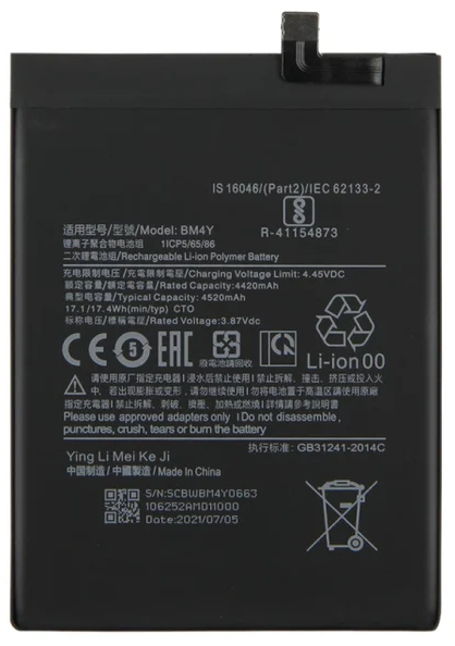 Baterija za Xiaomi POCO F3 / Mi 11i BM4Y 4520mAh 3.87V + montažni trak Celoten opis