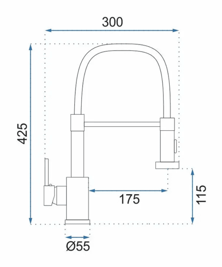 Dolgotrajno zanesljivost zagotavlja uporaba keramične kartuše. Upogljiv izliv vam omogoča, da usmerite curek, kamor koli želite. Konica izliva ima stikalo, ki vam omogoča izbiro med razpršenim in usmerjenim curkom.