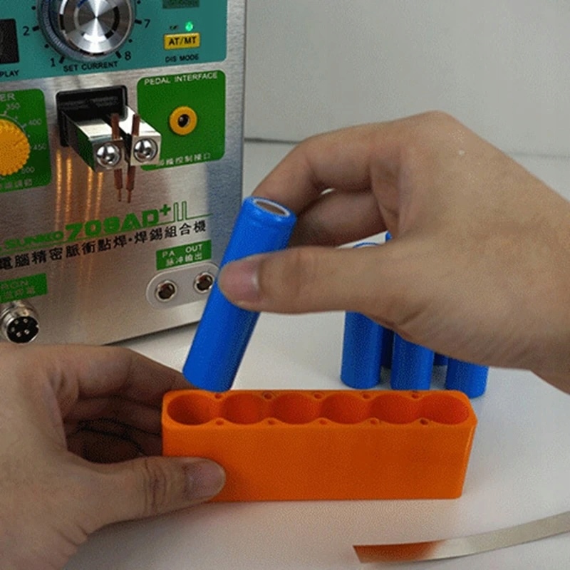 Zasnovan za varjenje baterijskih celic:Ta kalup je posebej zasnovan za učinkovito varjenje baterijskih celic. Njegova zasnova omogoča varno namestitev 8 celic, posebna reža za nikljeve trakove pa zagotavlja stabilnost med postopkom varjenja, kar zagotavlja trajno povezavo.