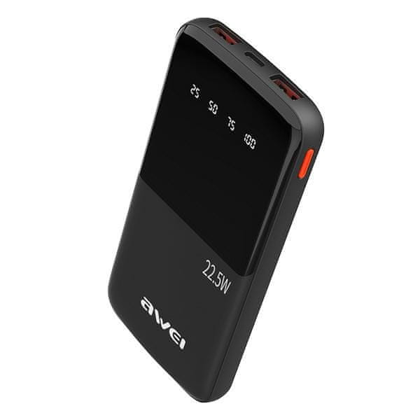 Prenosna baterija 10000mAh 22,5W AWEI črne barve Celoten opis