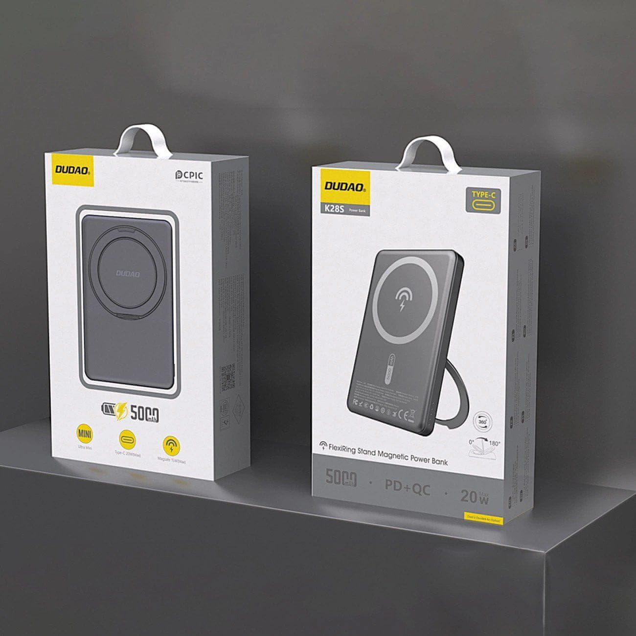 Dudao K28S 20W PD 5000mAh powerbank v elegantni sivi barvi je popoln spremljevalec za vaše mobilne naprave. Z MagSafe združljivostjo in vgrajenim stojalom omogoča hitro in priročno polnjenje. 20W Power Delivery zagotavlja hitro polnjenje, medtem ko 5000mAh kapaciteta poskrbi za dovolj energije na po Celoten opis