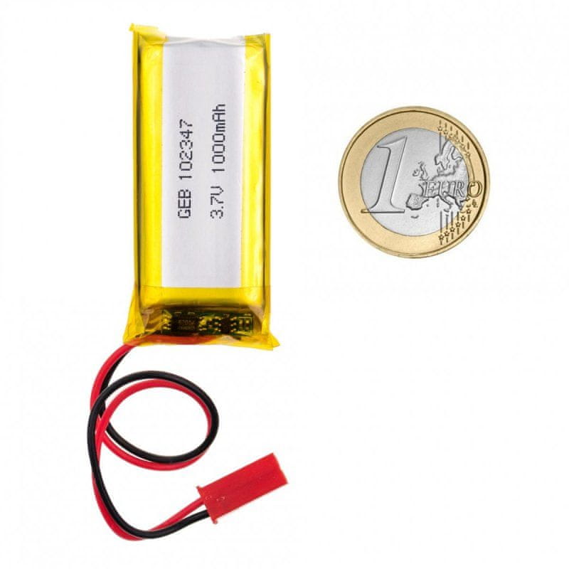 Zunanja litijeva 3,7-voltna baterija z zmogljivostjo 1000 mAh in priključkom BEC. Baterija je primerna za brezžične mini kamere ali module kamer.