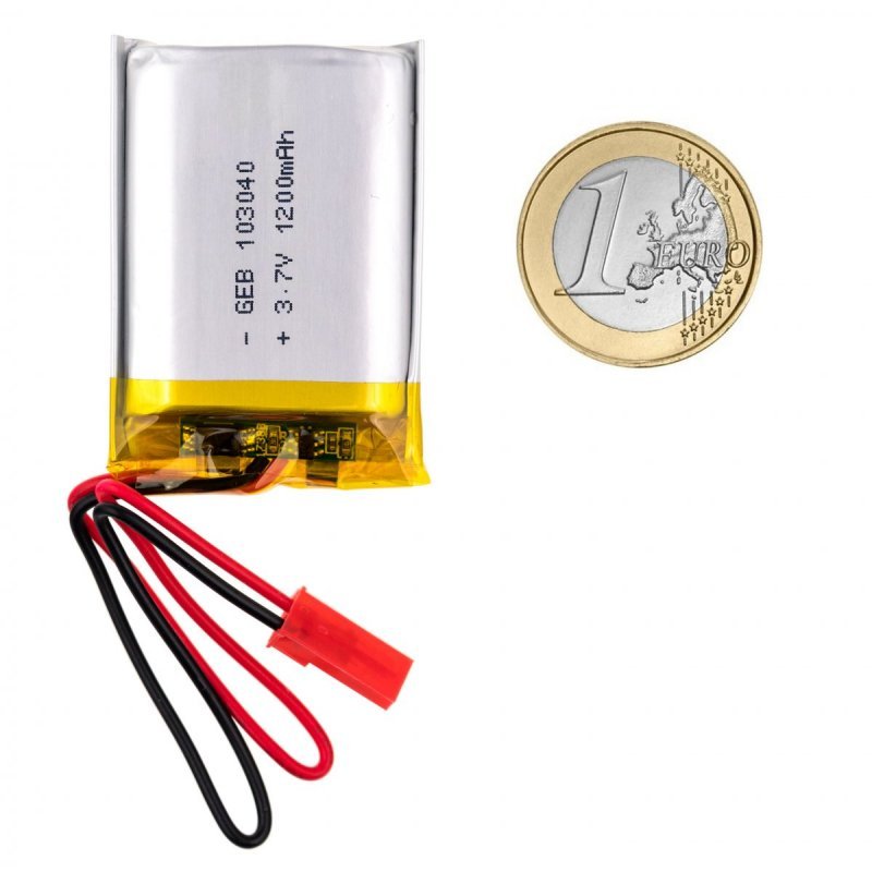 Zunanja litijeva 3,7-voltna baterija z zmogljivostjo 1200 mAh in priključkom BEC. Baterija je primerna za brezžične mini kamere ali module kamer.