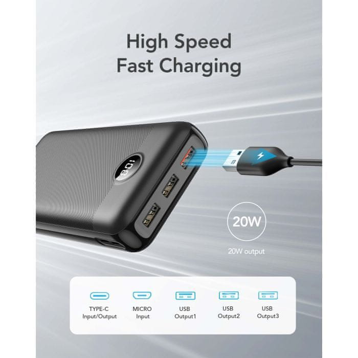 Ta prenosni polnilec z zasnovo z več vrati, vključno s 3 izhodnimi vrati USB-A in izhodnimi vrati tipa C. Zagotavlja več načinov polnjenja, vključno z dvosmernimi vrati Micro in Type-C. Ta power bank 30000mAh lahko zadovolji skoraj vse potrebe po polnjenju v vašem vsakdanjem življenju.