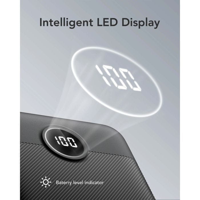 Prenosni polnilnik baterij je opremljen z jasnim digitalnim zaslonom, ki vam omogoča, da v realnem času obveščate, koliko kapacitete je še ostalo, in trenutno stanje polnjenja, tako da boste zlahka vedeli, kdaj boste znova napolnili.