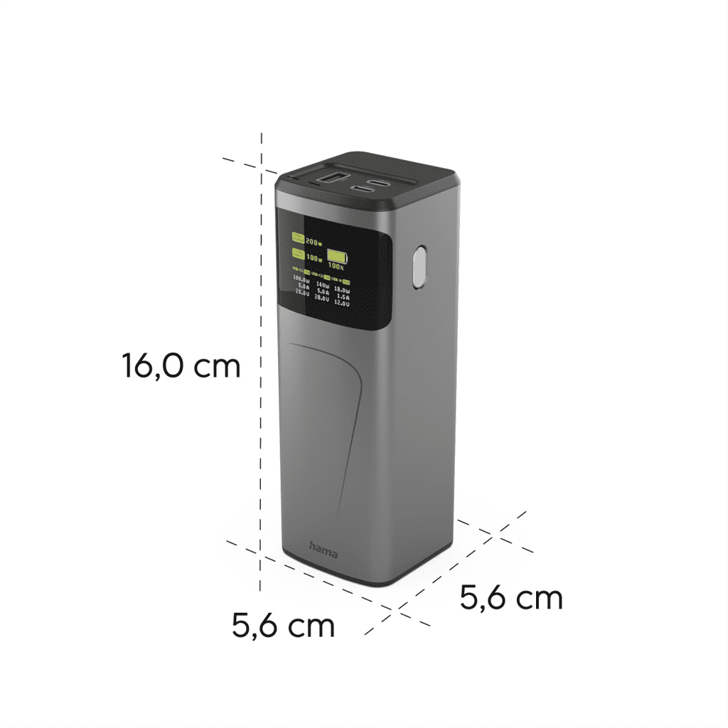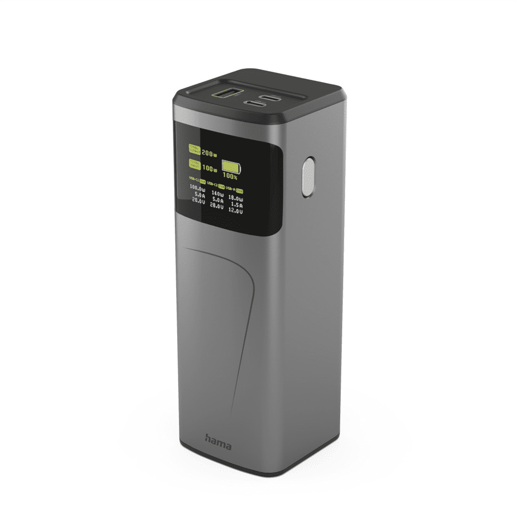 Hama High Power 200 W, powerbank, 24000 mAh, 2x USB-C, 1x USB-A, PD, QC, zaslon
