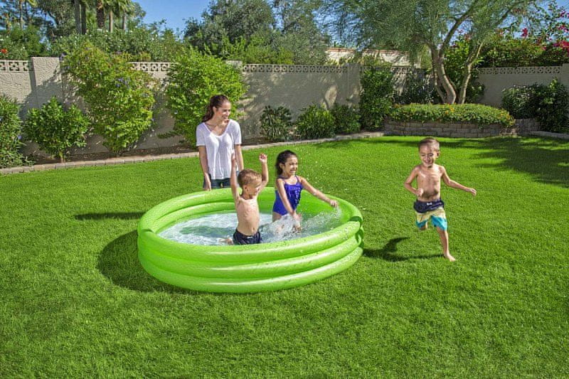 V vročih poletnih dneh ni boljše osvežitve za vaše najmlajše kot napihljiv bazen! Plavalni bazen je primeren kot otroški bazen. Enobarvni trikomorni napihljivi bazen, ki je primeren za vrt, kjer bo otroke zagotovo zelo razveselil. Mehka tla iz PVC-ja preprečujejo obrabo in so nedrseča. Velikost bazena: 183 × 33 cm Dimenzije škatle: 30 × 24 × 7 cm Primeren za otroke, stare 2 leti in več