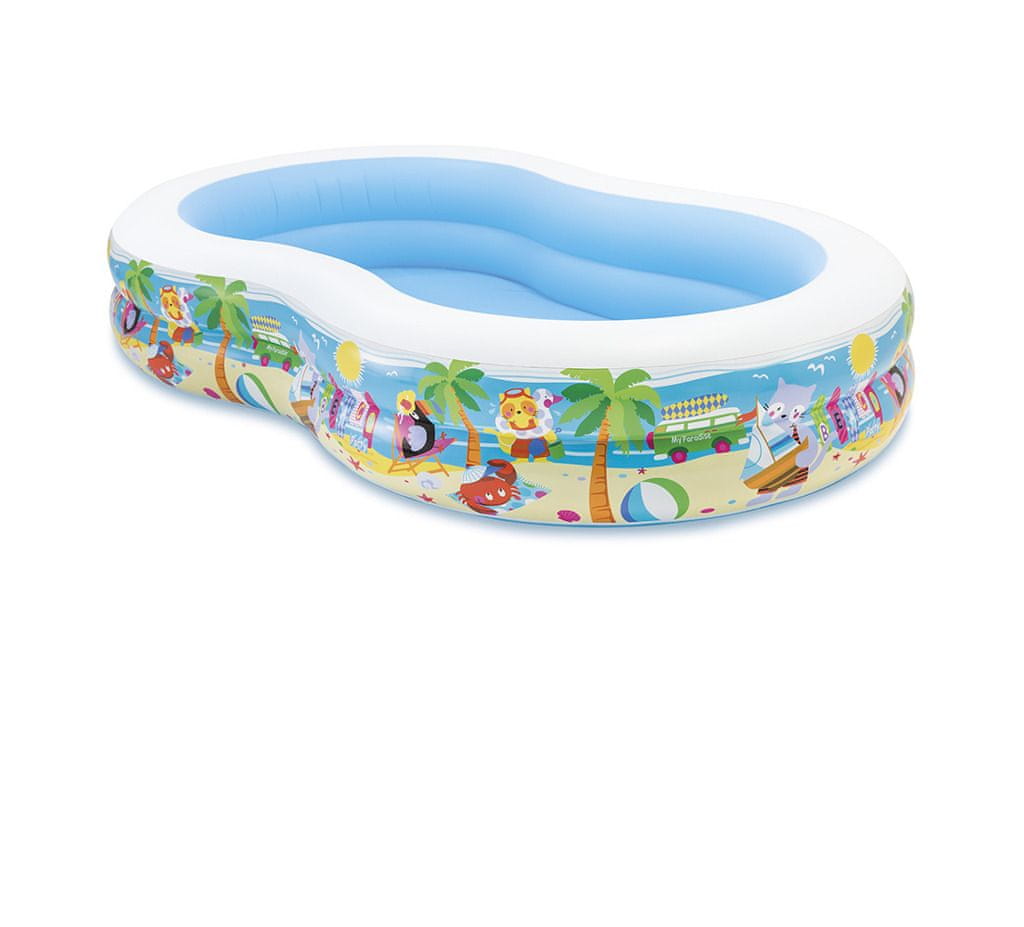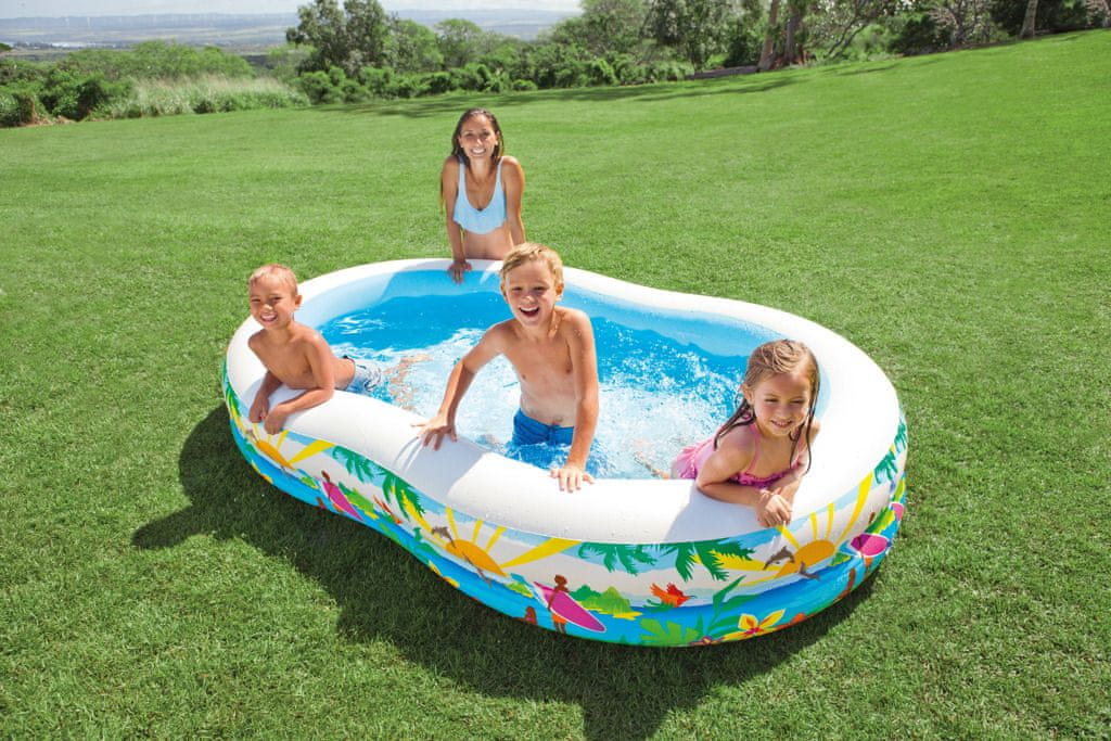 Napihljiv bazen z dimenzijami 262 × 160 × 46 cm. Dimenzije paketa približno 41 × 36 × 10 cm. Starost 3+
