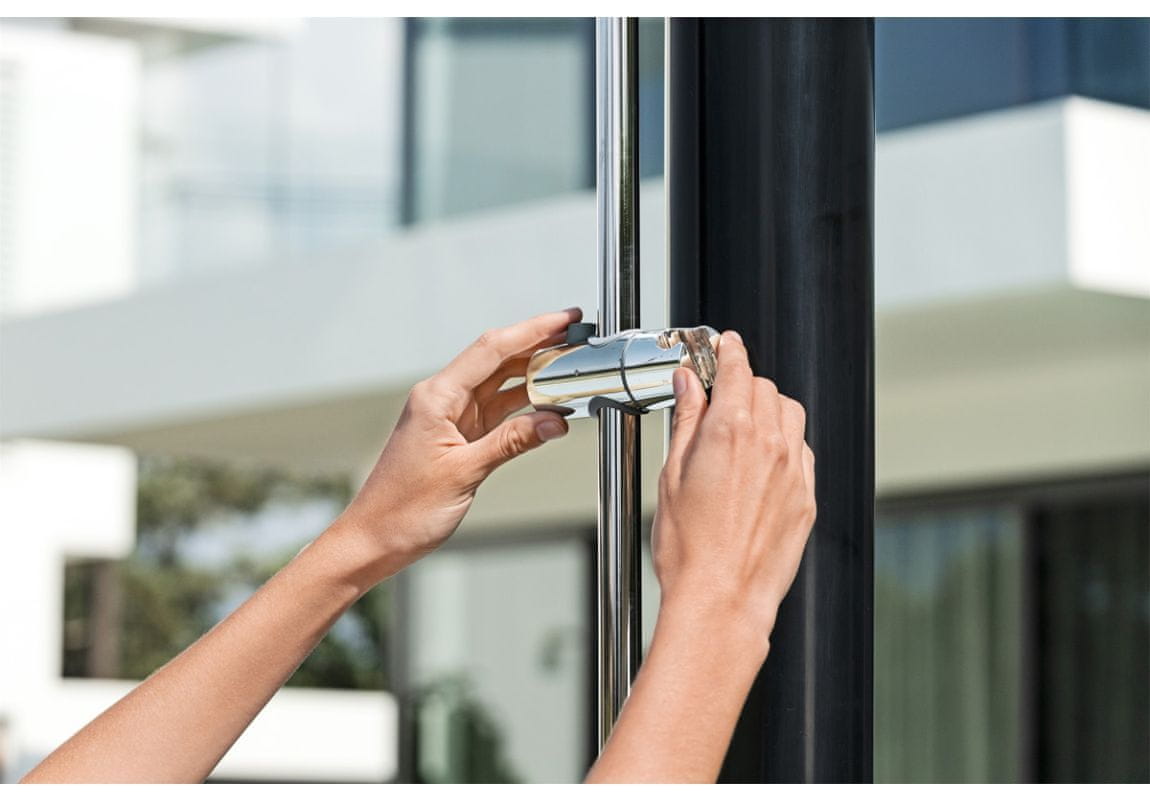 Tuš je enostaven za postavitev in ga lahko namestite na večino površin, priložena velika podlaga pa zagotavlja stabilnost med uporabo. Hitri priključek omogoča enostavno povezavo z vrtno cevjo, ročaj za nastavitev pretoka vode in temperature pa poskrbi, da si prho prilagodite svojim željam. Velika pršna glava nudi enakomerno in udobno pršenje, ki osveži telo po kopanju ali delu na vrtu.
