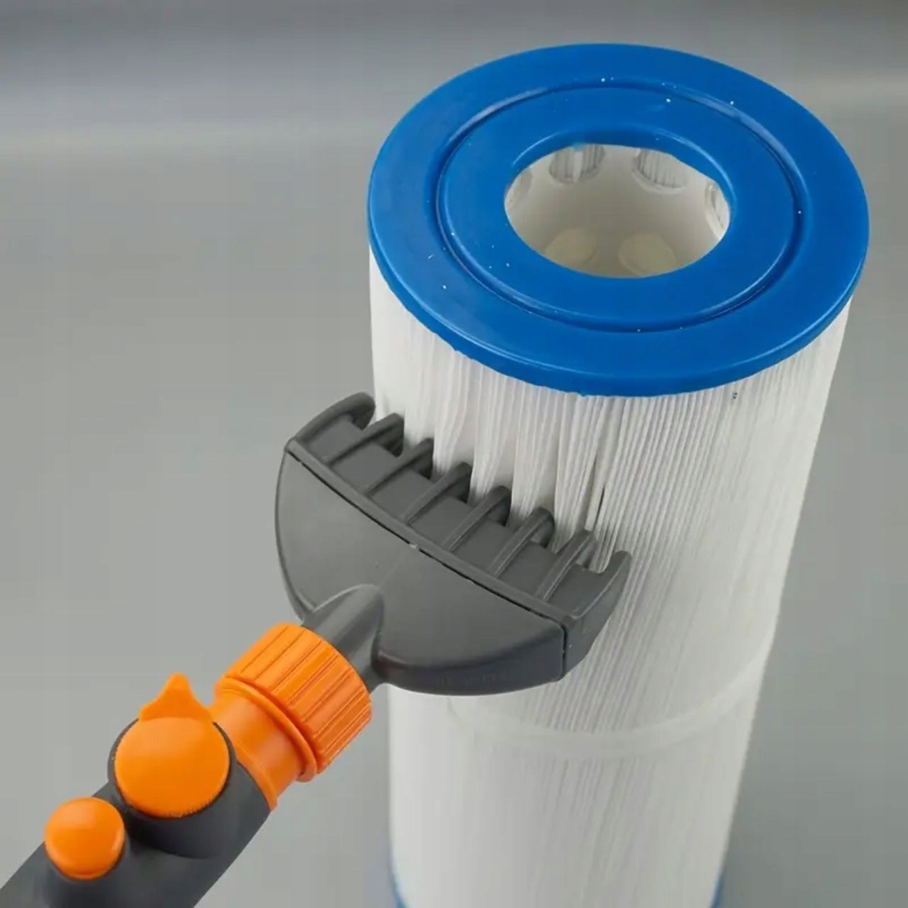 To kartušno čistilo za filter je nepogrešljivo orodje za vsakega lastnika bazena, jacuzzija ali spa. Zahvaljujoč nastavljivemu pretoku vode učinkovito odstrani umazanijo in usedline iz gub filtra, ne da bi bilo treba razstaviti sistem.