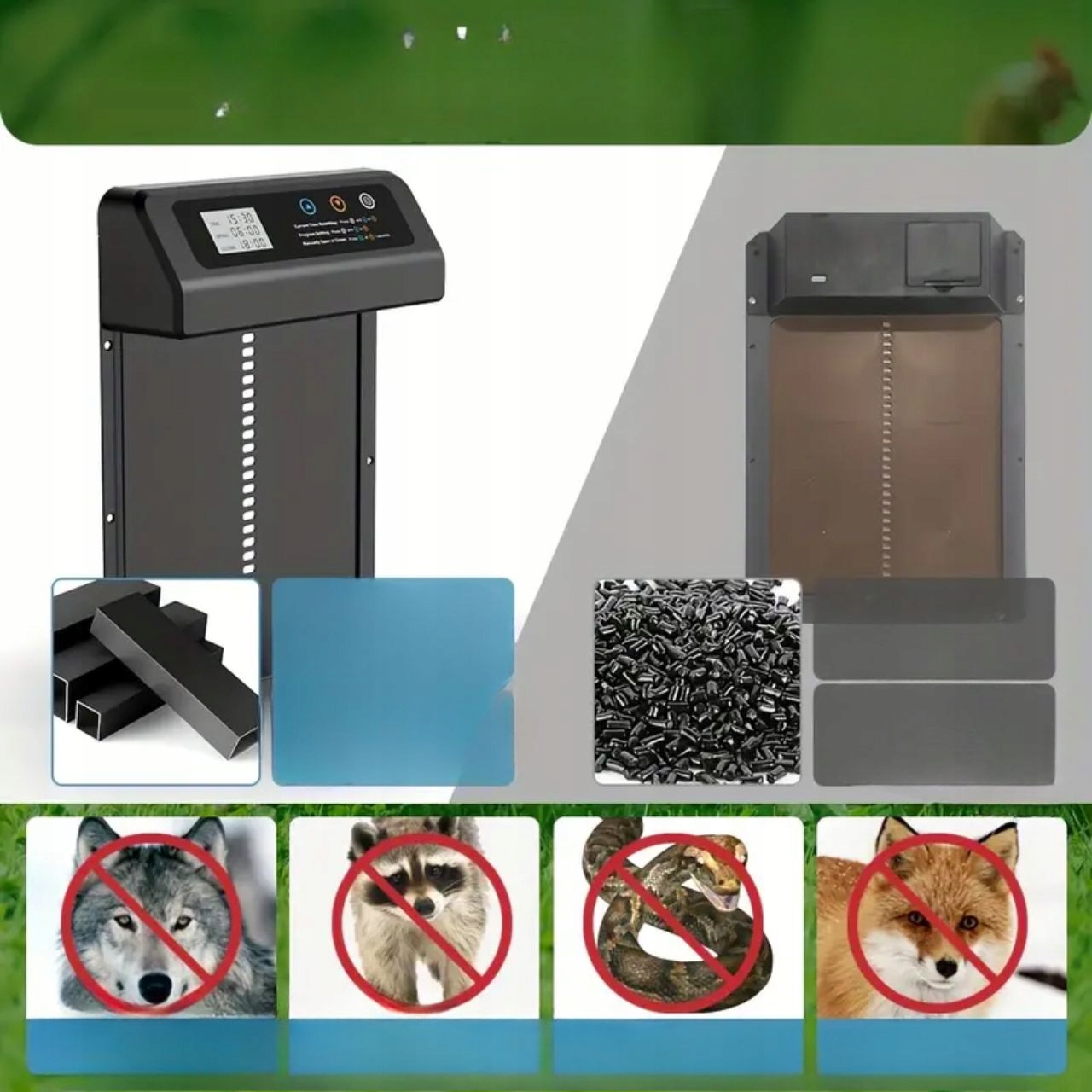 S to napravo postane dnevna nega perutnineveliko lažje in varnejše! Odpirač vrat kokošnjaka deluje samodejno zahvaljujoč vgrajenemu časovniku in LCD zaslonu, kar vam omogoča programiranje časa odpiranja in zapiranja glede na vašo dnevno rutino. Je popolna rešitev za kmete, ki želijo zagotoviti varnost svojih živali, tudi ko so odsotne.