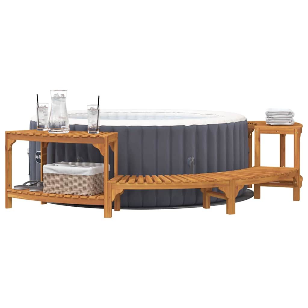 • Močan akacijev les: Obloga je narejena iz trdnega akacijevega lesa, znanega po svoji moči in odpornosti. Topli rjavi toni tega lesa dodajajo čar vsakemu zunanjemu prostoru in zagotavljajo stabilnost za vaš masažni bazen. Njegova trdna konstrukcija zagotavlja dolgotrajno vzdržljivost in ohranitev v vaši zunanji oazi.
