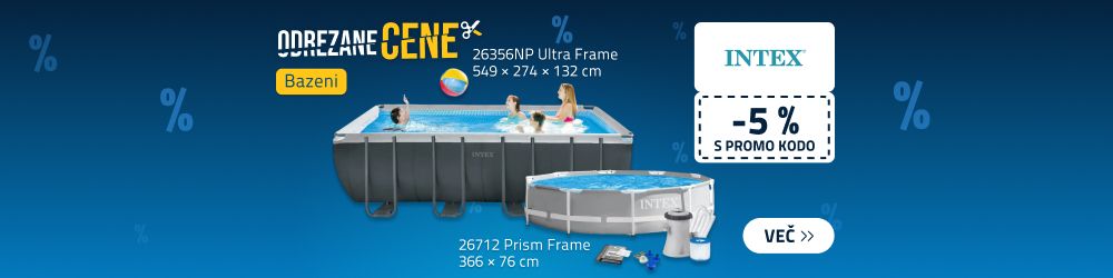 Bazeni Intex nudijo zajamčeno kakovost po zelo ugodnih cenah. Izbirate lahko med nadzemnimi ali delno vkopanimi bazeni.