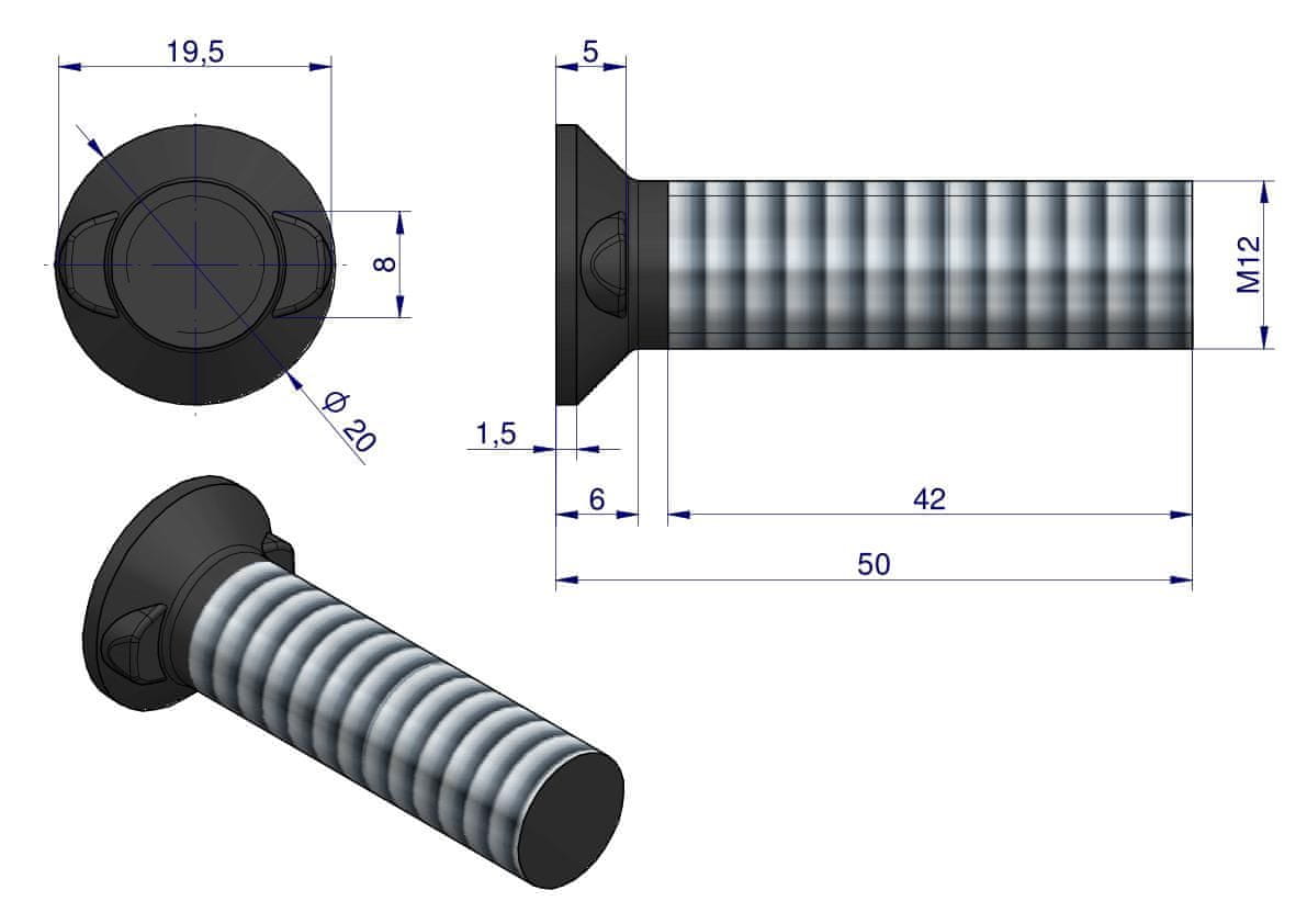 Komplet dvoslojnih plugov M12×50 mm razreda 12.9 Waryński (naprodaj v kompletih po 25) Celoten opis