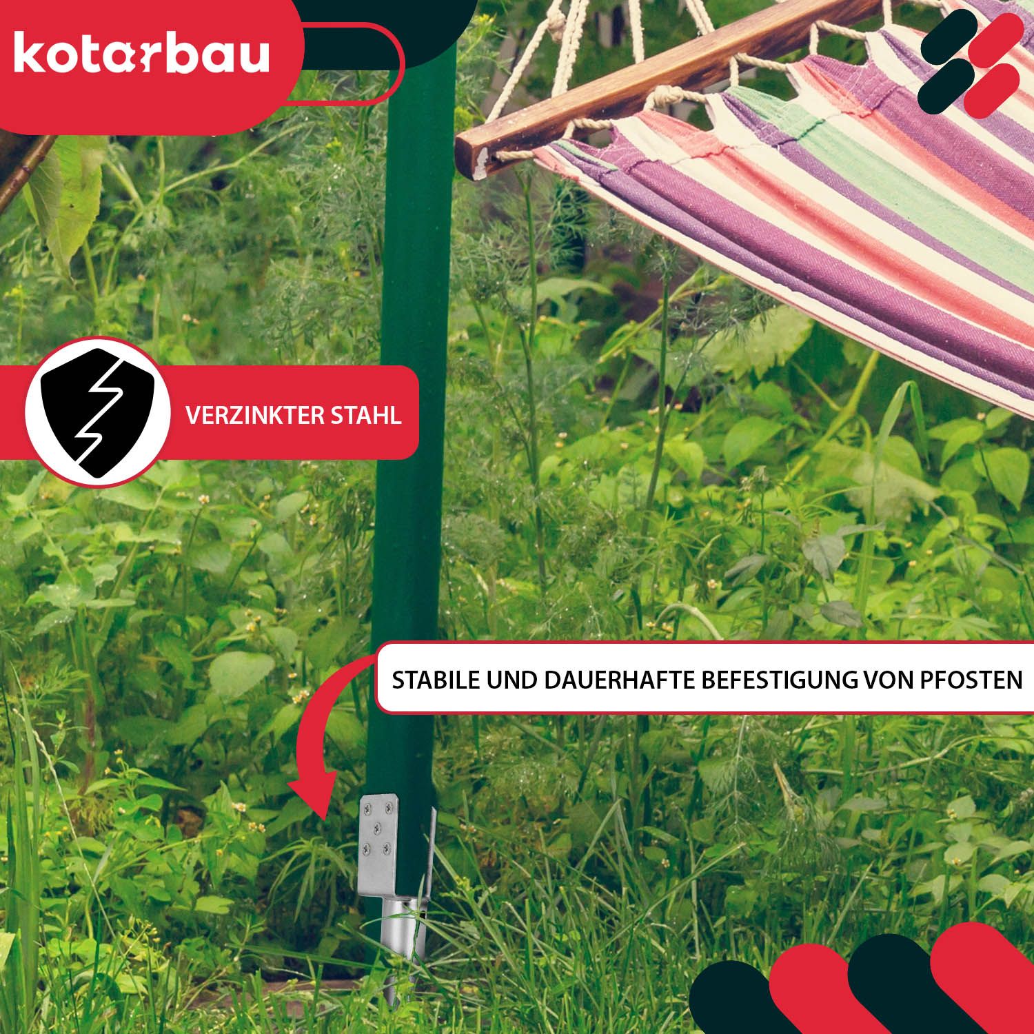 hitra in enostavna namestitev, ki ne zahteva uporabe betona ali specializiranega orodja. Preprosto privijte sidro v tla in nato nanj pritrdite leseni drog s priloženimi vijaki. Ta način namestitve je priročen in zagotavlja ustrezno stabilnost in varnost celotne konstrukcije. Podstavek se lahko uporablja tako pri domačih projektih kot pri večjih gradbenih projektih. STABILNOST: Zaradi globokega prodiranja v zemljo in trdne konstrukcije podstavek stebra zagotavlja