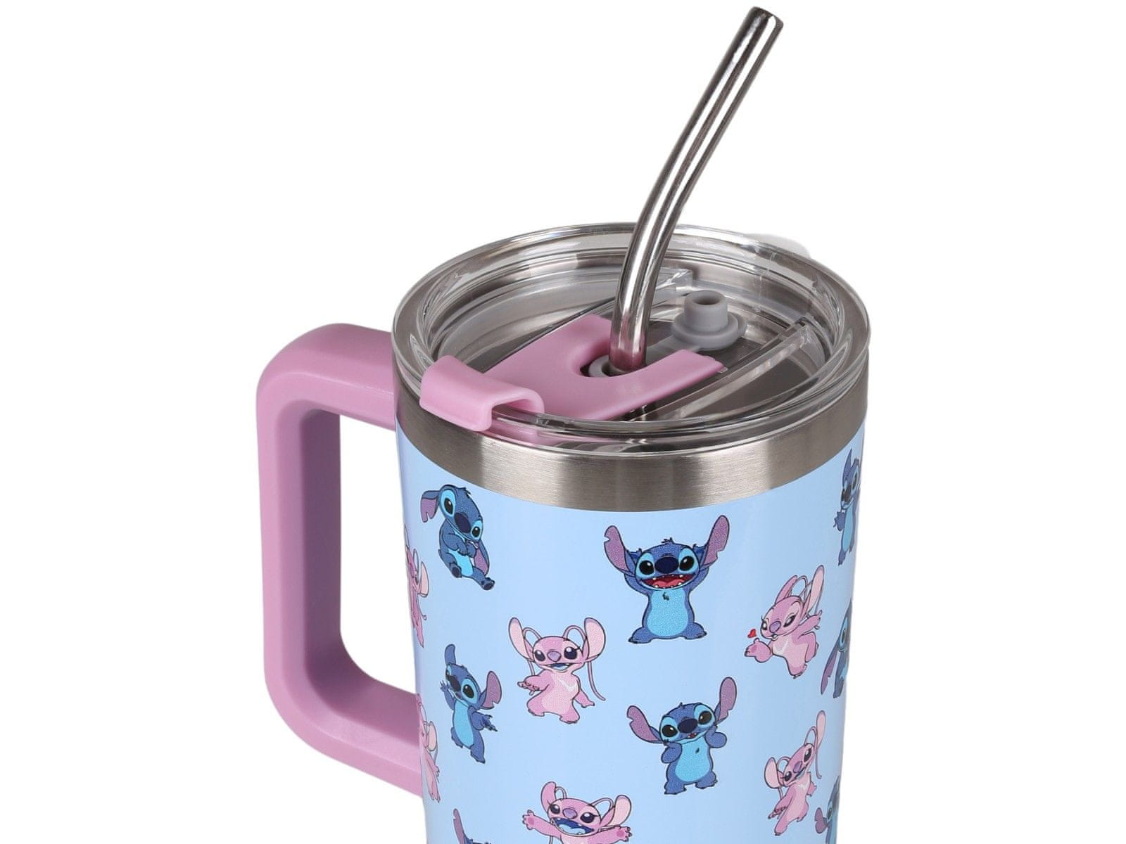 Disney Disney Stitch and Angel Velik termalni vrč s pokrovom in kovinsko slamico, iz nerjavečega jekla, potovalni vrč 1,18l