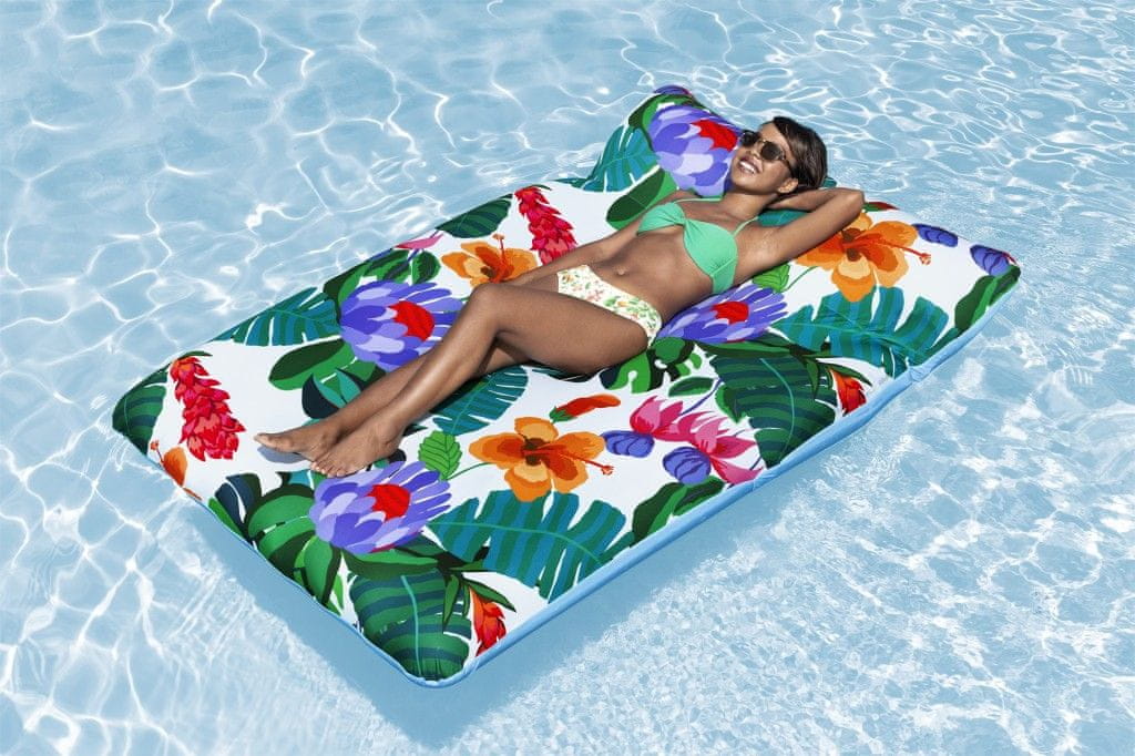 Napihljiv ležalnik z dimenzijami 2 m x 1,29 m. Ležalnik je izdelan iz visokokakovostnega vinila in ima prevleko iz blaga, ki jo je mogoče odstraniti in oprati. Ležalnik ima dve zračni komori. Največja dovoljena teža je 140 kg. V paketu je vključen obliž za popravilo.