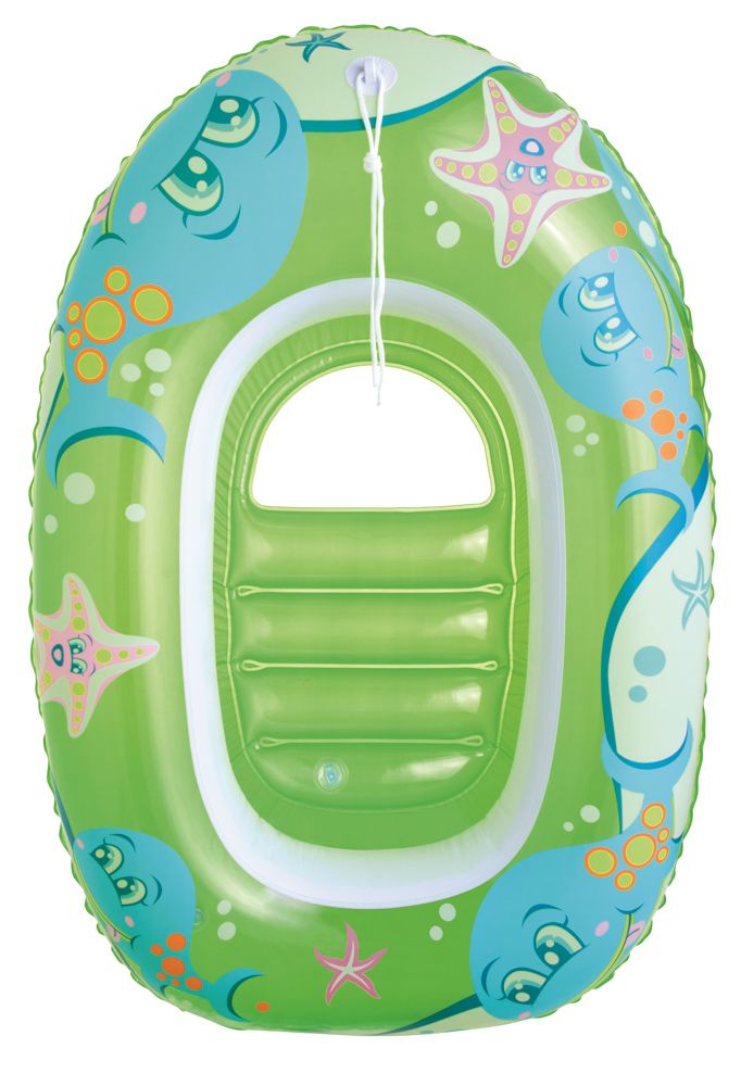 Plavajoči čoln Floating Friends Kids Inflatable Rope Boat je popoln pripomoček za vaše male pustolovce, stare 3 leta in več. S prikupnim dizajnom delfina in praktičnimi funkcijami bo zagotovo poskrbel za večurno vodno zabavo. Ta napihljivi čoln zagotavlja veliko prostora, da se vaš otrok lahko udobno usede in uživa v vožnji. Napihljivo dno zagotavlja, da se bo vaš mali kapitan v njem počutil udobno. Napihljivi čoln je opremljen z vlečno vrvjo z vgrajenim ušesom, ki omogoča enostavno vleko ali krmiljenje čolna. Otroški čoln Bestway združuje udobje, varnost in zabavo za majhne otroke. Otrokom pomaga, da se že v zgodnjem otroštvu navadijo na vodo. Velikost napihnjenega čolna: 20,5 × 56,5 × 96 cm. 69 × 102 cm. Dimenzije embalaže: 29 × 17 × 2,3 cm. Zasnovan za 1 osebo. Največja nosilnost: 45 kg. Uporabljajte samo pod nadzorom odrasle osebe. Starost: 3+