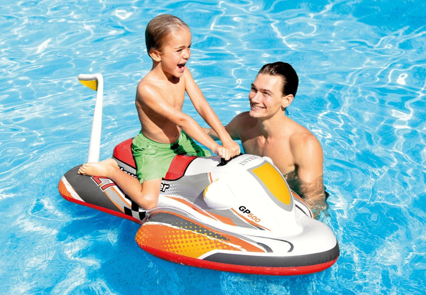 Otroški napihljivi skuter z vodnimi ročaji za poletno vodno zabavo za male plavalce. Otroški skuter, ki bo vsem malim plavalcem popestril bivanje v vodi.