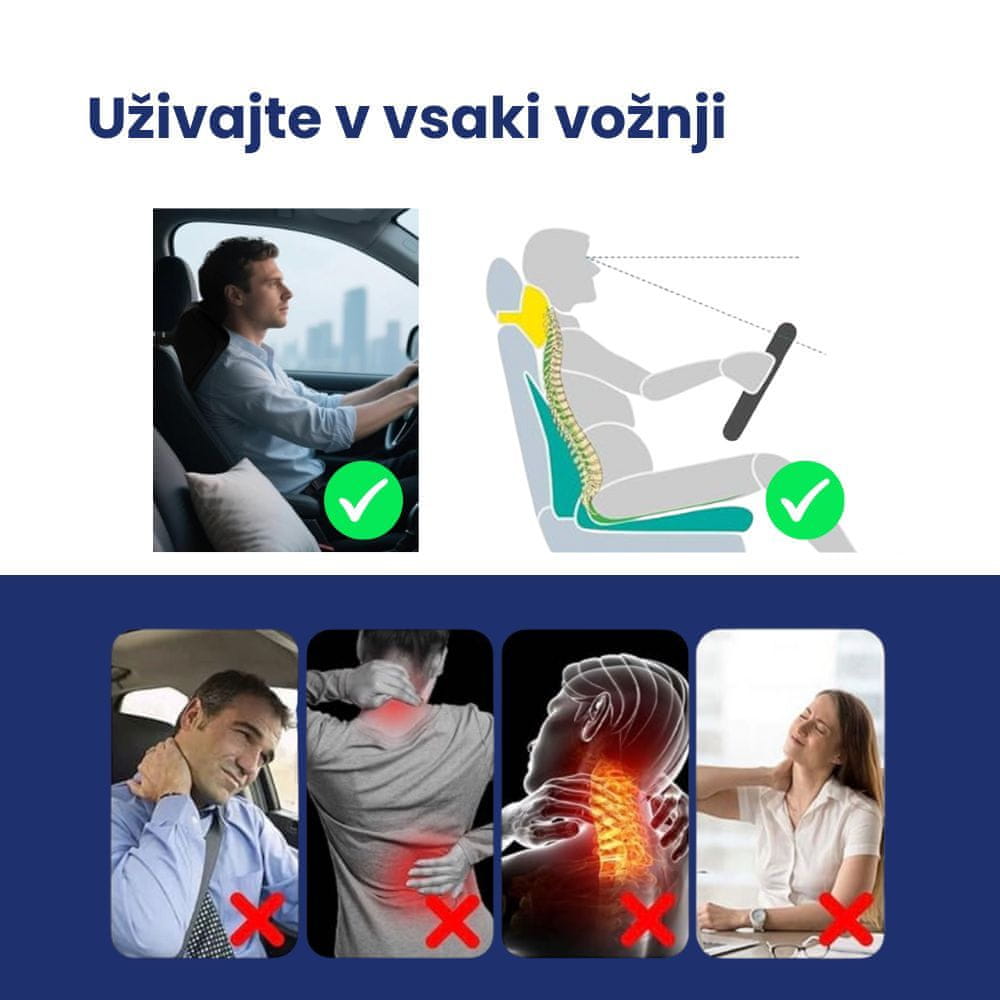 ErgoLux blazina je idealna za uporabo doma, v pisarni ali na potovanju. Še posebej priročna je v avtu, kjer lajša napetost vratu med vožnjo.