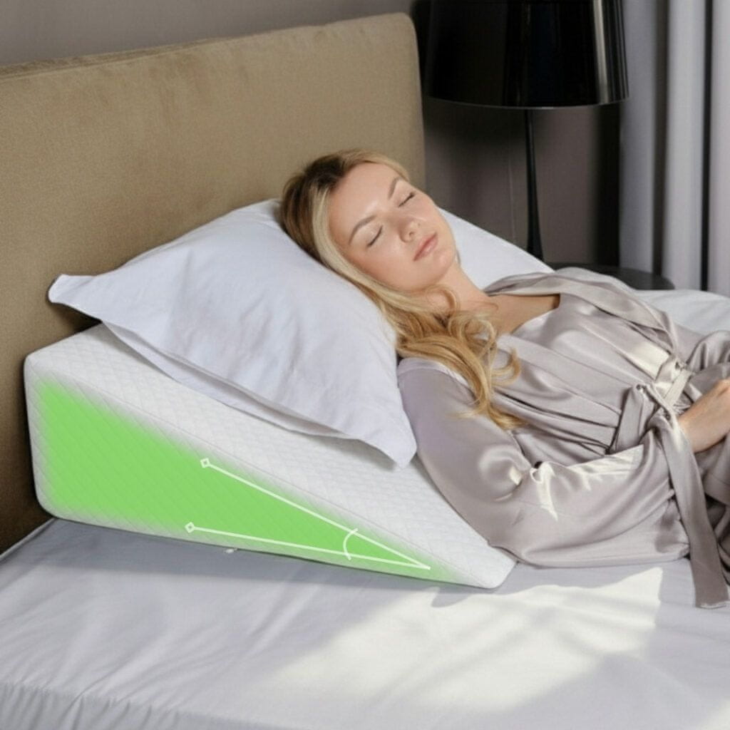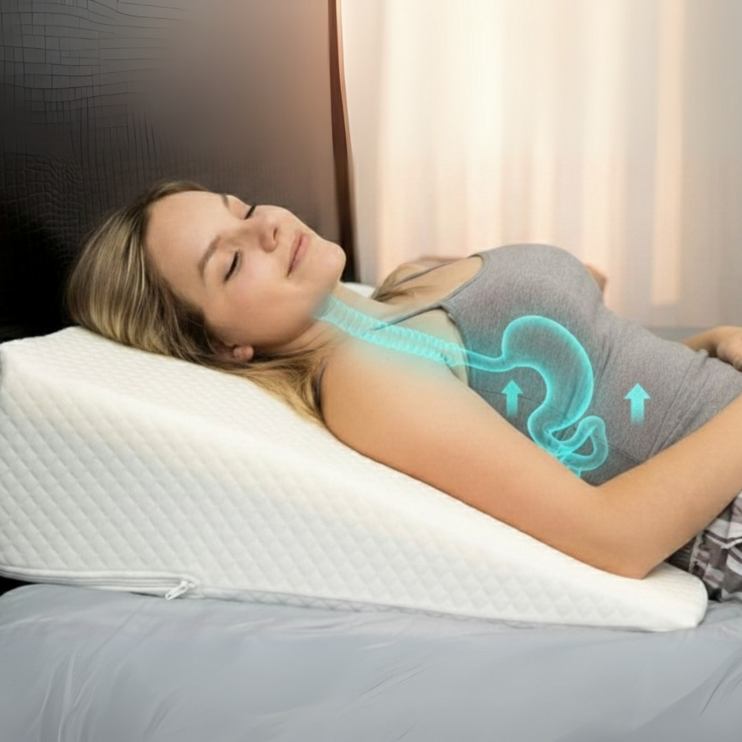 Naša klinasta blazina vam omogoča spanje v dvignjenem položaju, ki preprečuje vračanje želodčne kisline v požiralnik in lajša simptome GERB ter drugih želodčnih težav.