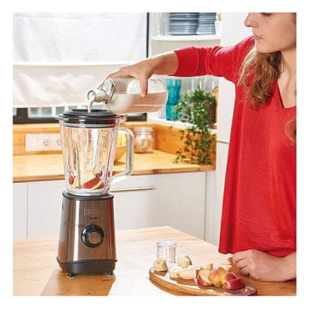 Značilnosti: – nastavitev prave hitrosti za doseganje želene fine konsistence – Funkcija PULSE – 1,5 l steklena posoda in 50 ml merilna skodelica v pokrovu – ohišje iz nerjavečega jekla s. Celoten opis
