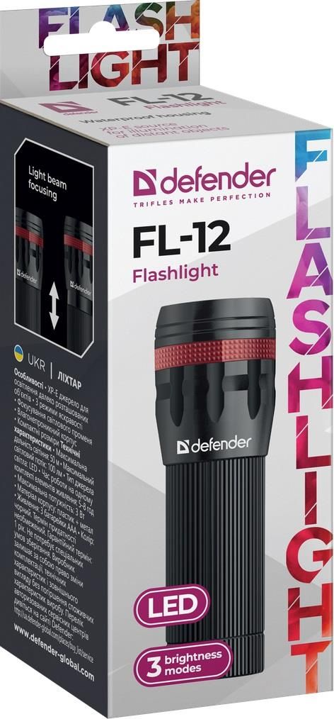 Svetilka Defender FL-12 je robustno izdelana ročna svetilka, idealna za vsakodnevno uporabo in aktivnosti na prostem. Napajajo jo tri baterije AAA, zagotavlja 100 lumnov svetlobe in doseg do 50 metrov. S tremi načini delovanja, vključno s funkcijo ZOOM, lahko prilagodite svetlost glede na situacijo. Izdelana iz letalskega aluminija naredi svetilko lahko in vzdržljivo. Poleg tega njena kompaktna velikost zagotavlja priročno shranjevanje in transport. Osvetlite si pot s svetilko Defender FL-12!