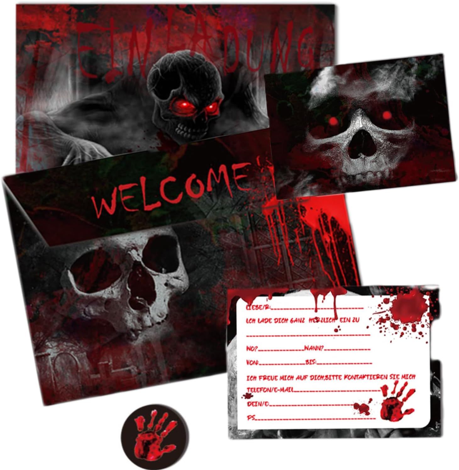 12× VABILA NA ZABAVO ZA NOČ ČAROVNIC KUVERTA NALEPKE KARTICE NEMŠKA Celoten opis