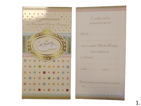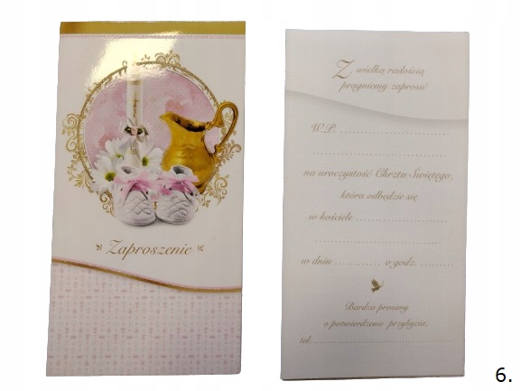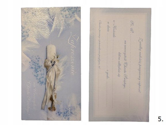 5 kosov odpirajočih se vabil za krst z belimi ovojnicami.
