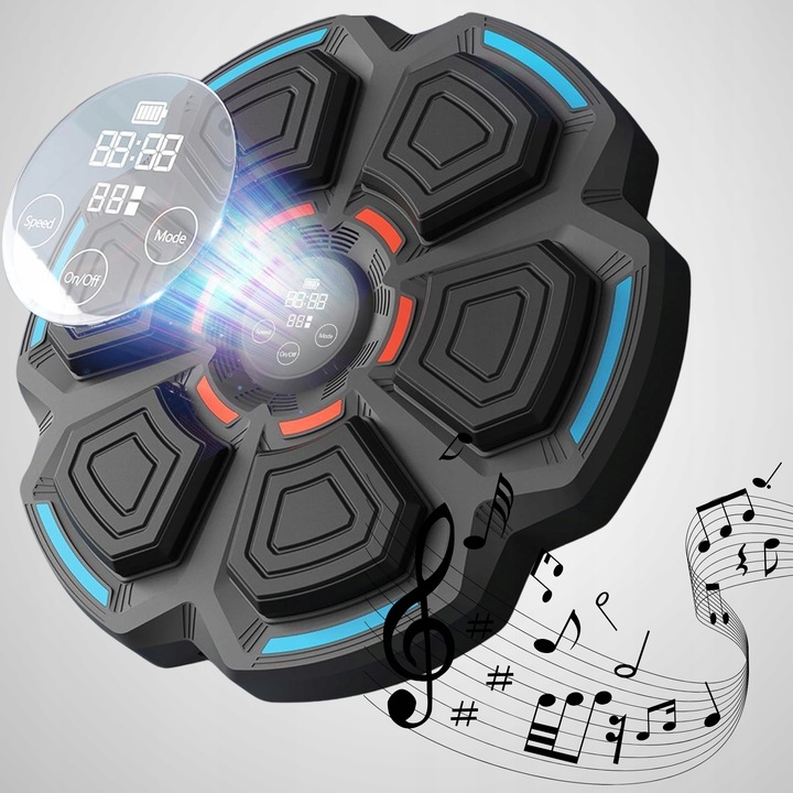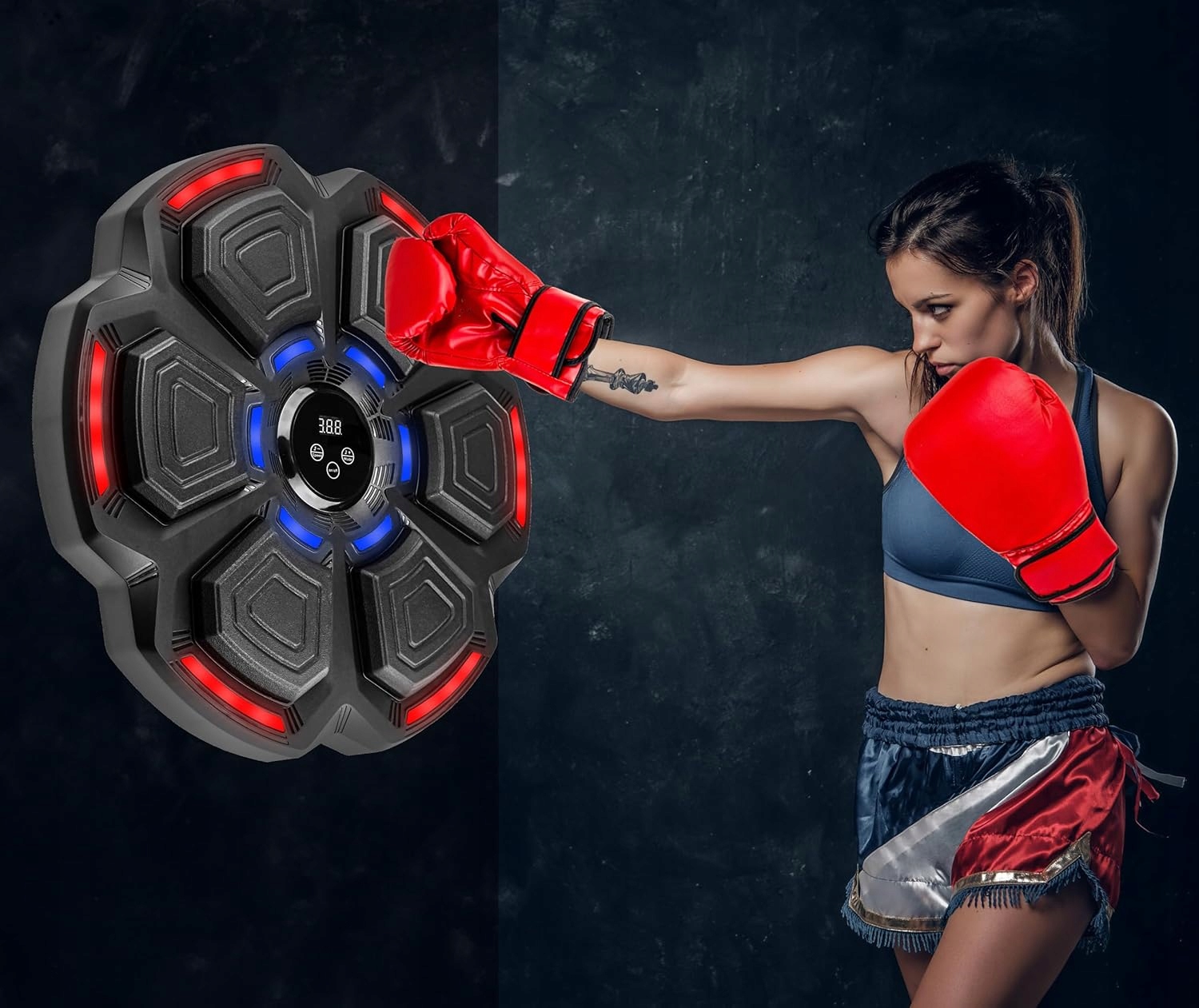 ✅ Vadba z glasbo in LED – tarča se na vsak zadetek odzove s svetlobo in zvokom.