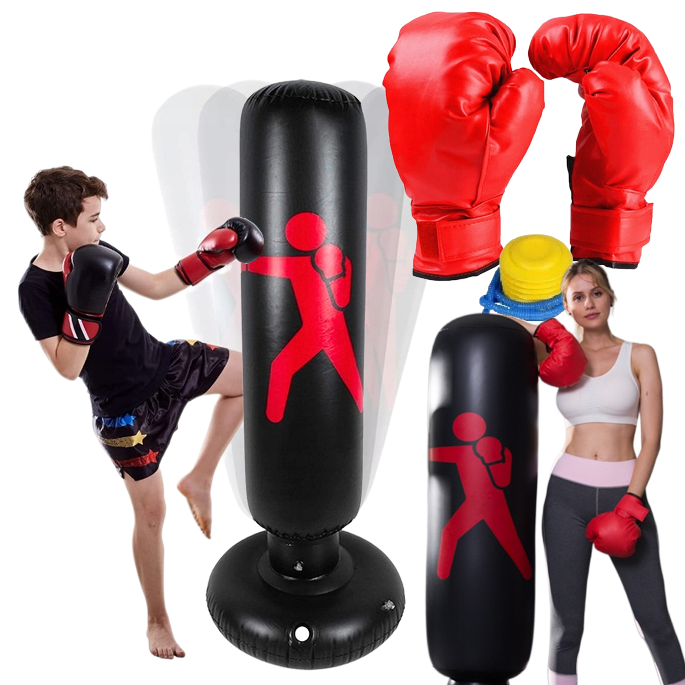 shumee Otroška stoječa boksarska vreča Napihljive boksarske rokavice za trening Črpalka