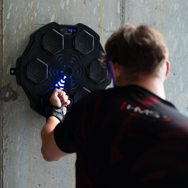 Tarča HMS TB02 je opremljena z Bluetoothom in zvočnikom, ki vam omogoča predvajanje vaše najljubše glasbe iz telefona, zaradi česar je vsaka vadba bolj motivirana. Digitalni zaslon prikazuje število uspešnih udarcev, porabljene kalorije in trajanje treninga, tako da lahko spremljate svoj napredek v realnem času.