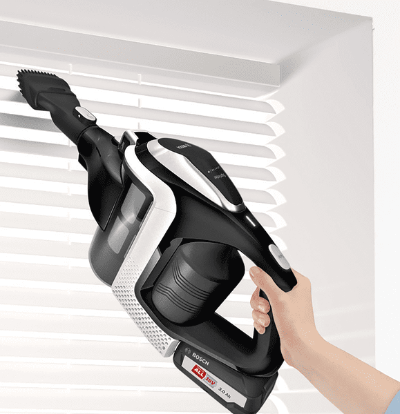 Bosch sesalnik brez kabla, vendar s podaljšanim časom delovanja zahvaljujoč zamenljivi bateriji. Baterija je enaka, kot se uporablja pri 18-voltnih sistemih električnih orodij Home & Garden Bosch.