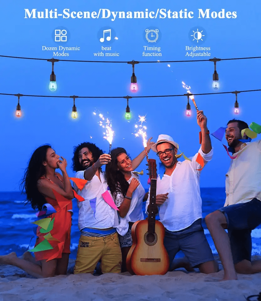Pametna zunanja veriga LED za zabavo bo polepšala vsako zabavo ali poskrbela za prijetnejše praznično vzdušje. Verigo lahko uporabite za osvetlitev zunanjih vrtov in zabav s prijatelji. Zaradi velike variabilnosti nastavitev (odziv na glasbo, časovnik, izbira barve, prilagoditev svetlosti itd.) je idealen izdelek za poročno dekoracijo.
