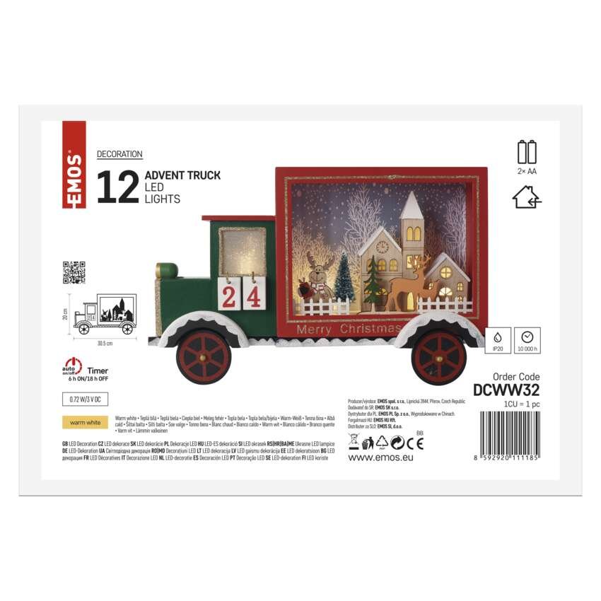 Emos LED adventni koledar, lesen avto, 20x30,5 cm, 2x AA, notranji, topla bela, časovnik