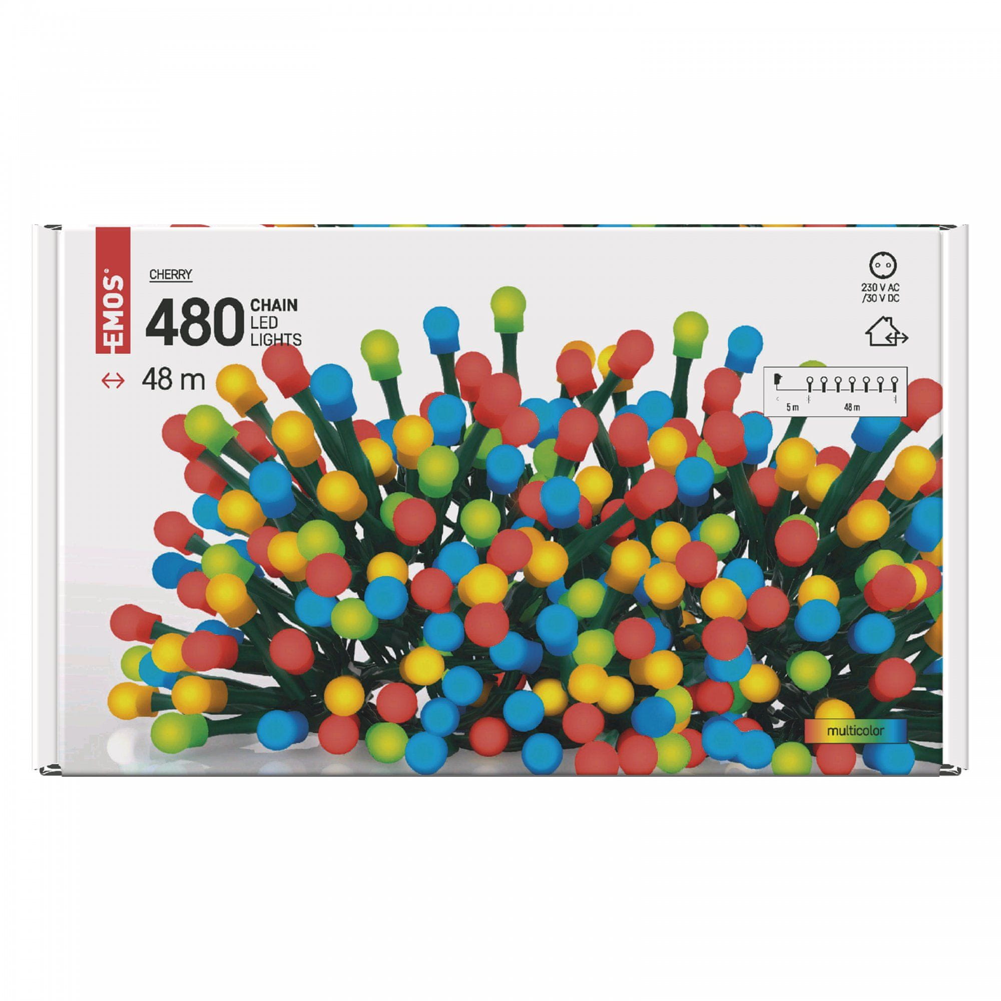 Emos LED božična cherry veriga – kroglice, 48 m, zunanja in notranja, večbarvna, časovnik