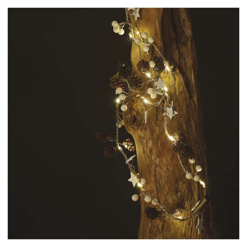 Emos LED božična girlanda – storžki, 1,7 m, 2x AA, notranji, topla bela
