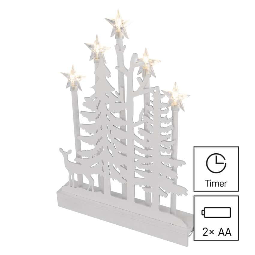 Emos LED lesena dekoracija – gozd z zvezdami, 35,5 cm, 2x AA, notranja, topla bela, časovnik