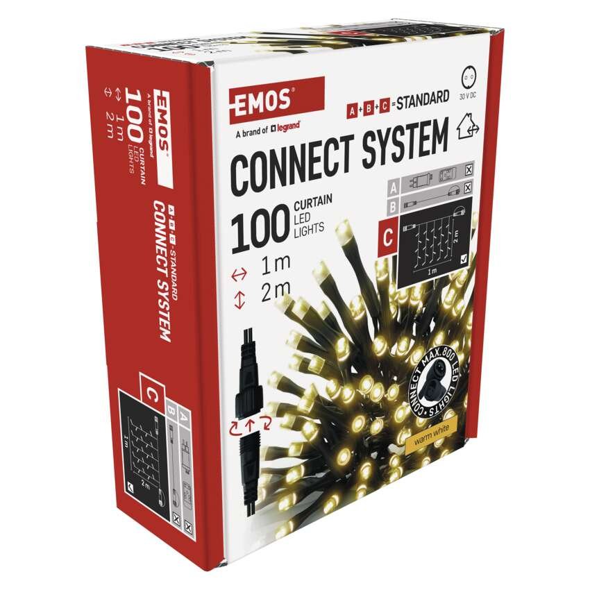 Emos Standard LED povezovalna božična veriga – zavesa, 1,1x2 m, zun., topla bela