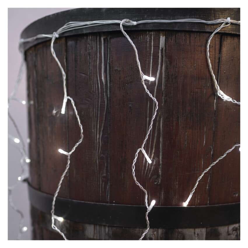 izdelek: kapniki • barva svetlobe: hladna bela • dimenzije: 2,5 × 0,9 m • uporaba: zunanja in notranja • daljinski upravljalnik: ne • funkcije: sveti/utripa • tip napajanja: omrežni adapter (ni priloženo) • oblika: klasičen • število LED: 100 • dolžina dovoda: 10 cm • barva žice: transparenten Celoten opis