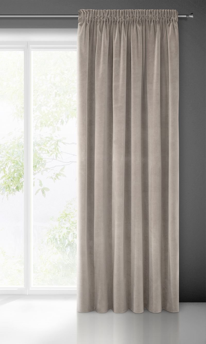 Enobarvna žametna zavesa širina: 140 cm, dolžina: 270 cm, barva: bež, teža: 330 GSM, sestava: 100 % poliester