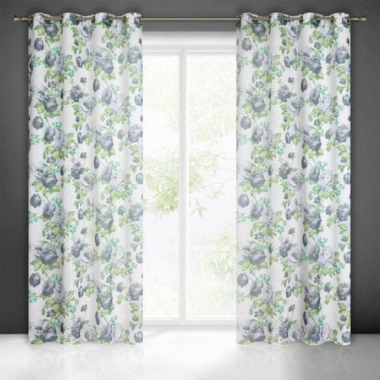 Klasična zavesa iz tkanine s strukturo platna, okrašena s pastelnim potiskom vrtnega cvetja. Srednja stopnja zasenčenosti. Tkanino je enostavno likati. Širina: 140 cm, dolžina: 250 cm, barva: bela/zelena, teža: 110 GSM, sestava: 100 % poliester