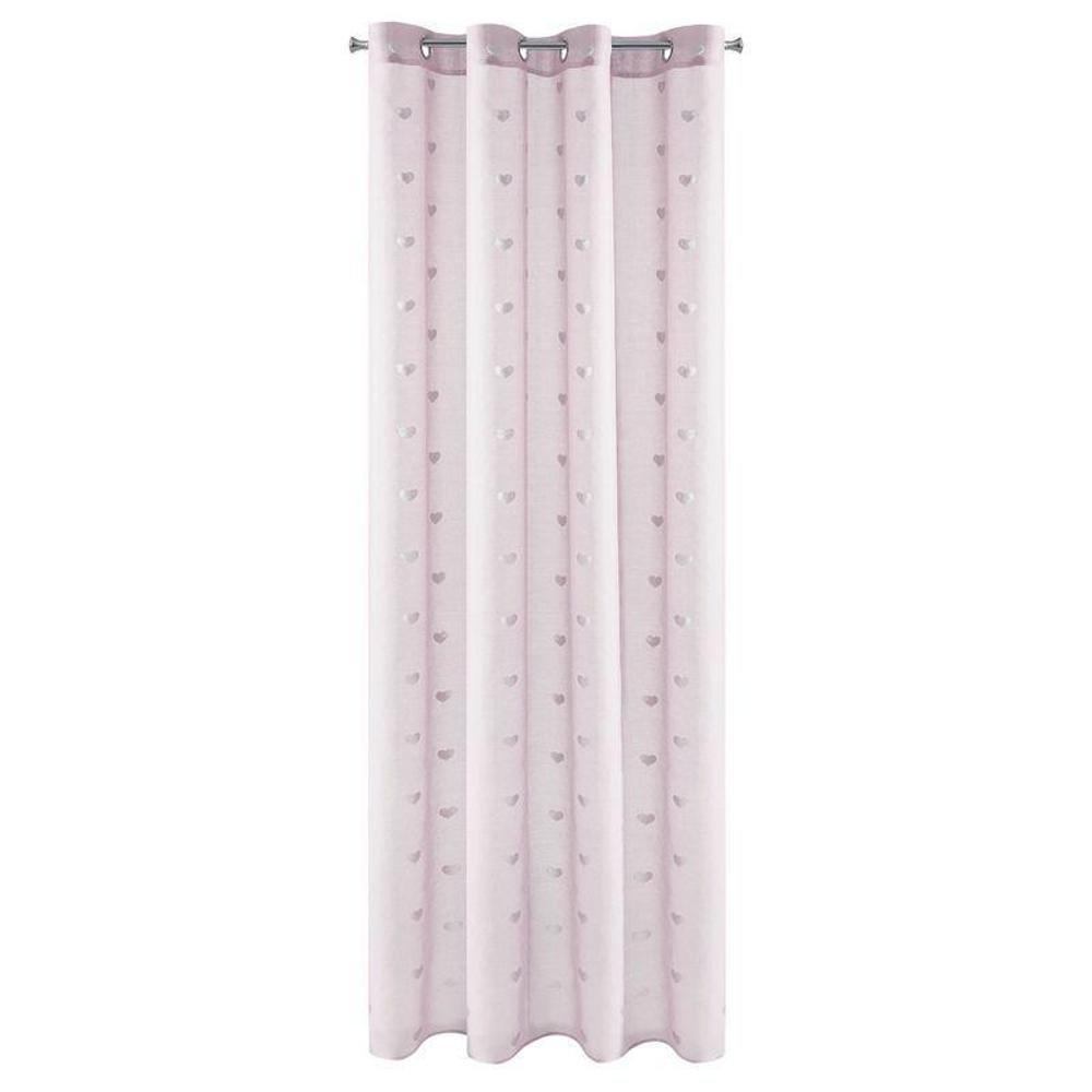 Lahka zavesa v dekliškem odtenku pudrasto rožnate barve s potiskom v obliki srebrnih srčkov. Celoten opis